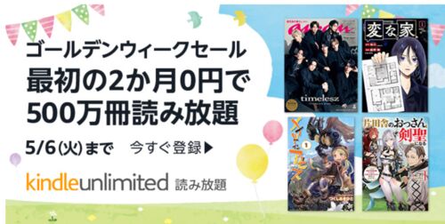 2か月無料で500万冊が読み放題! 対象者は限られていますが、Amazonにログインした状態で以下のリンク先に飛んで、キャンペーンバナーが表示されればあなたも対象者です。 Kindleアンリミテッド2か月無料キャンペーン これまで適用した方も、一定期間が…